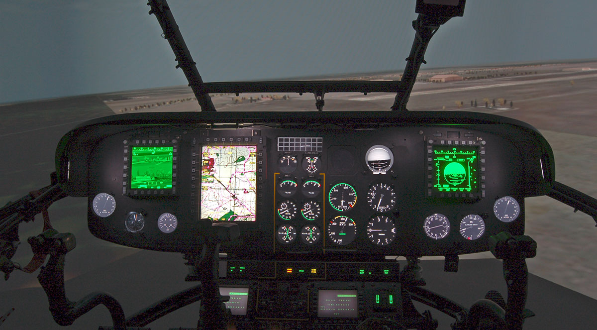 The Mi-17 Full Mission Simulators (FMS) provide cost-effective, full security, crew initial and recurrent training based on accurate replication of the actual helicopter and mission environment. The FMS systems are designed to cover every aspect of helicopter routine, emergency and mission operations in diverse scenarios. This includes flying skills, terrain orientation development, and combat mission rehearsal.